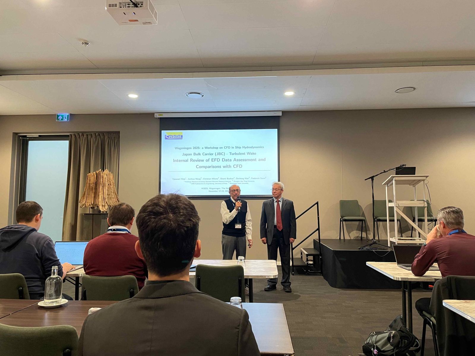 2025年11月17-19日,2025国际船舶CFD会议(Workshop on CFD in Ship Hydrodynamics, W2025)在荷兰瓦赫宁根(Wageningen)召开。会议由荷兰MARIN水池承办,来自22个国家49家研究机构,共110多位专家学者参加了会议。其中中国有16位学者参会,同时中国有9家单位向会议提交标模计算数据,均创历史之最。上海交大CMHL研究中心主任万德成教授和王建华副研究员参加了本次会议。