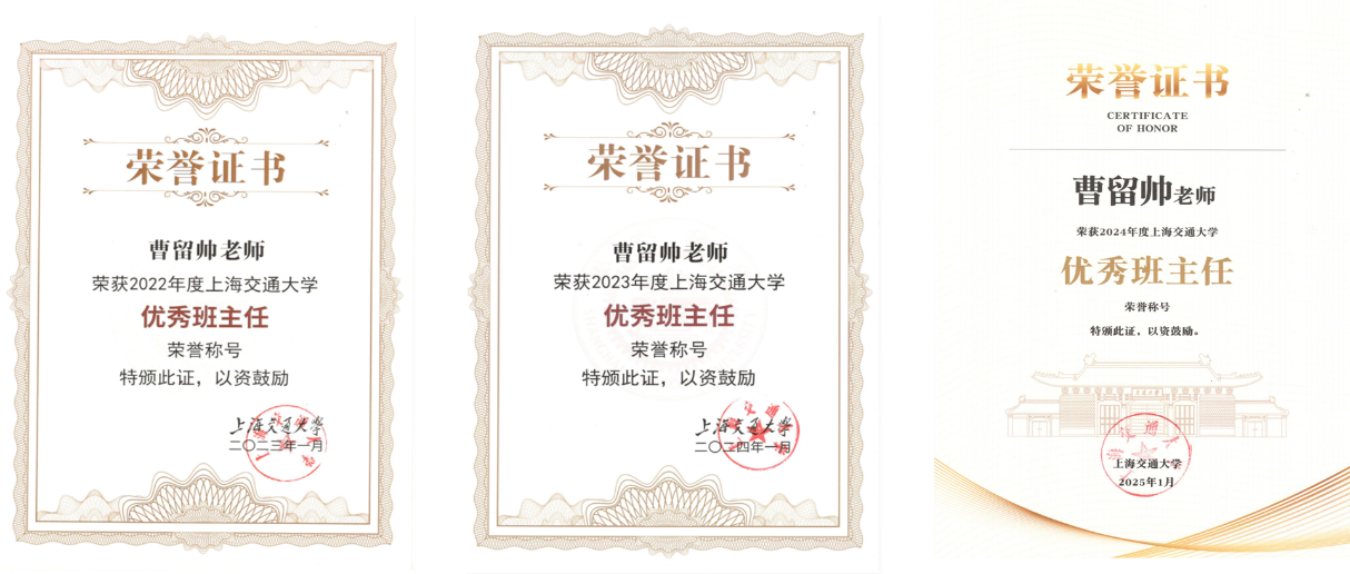 CMHL研究中心青年教师曹留帅连续三年荣获“优秀班主任”荣誉称号