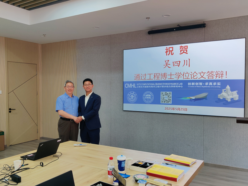 2025年,CMHL研究中心培养了两位博士后以及两位联合培养工程博士。博士后刘正浩的出站答辩题目是“液氢运输船围护系统温度场及热应力研究”。博士后谢丰泽的出站答辩题目是“适用于船海工程强流-固耦合问题的无网格粒子法研究”。两人均顺利通过了博士后出站答辩。